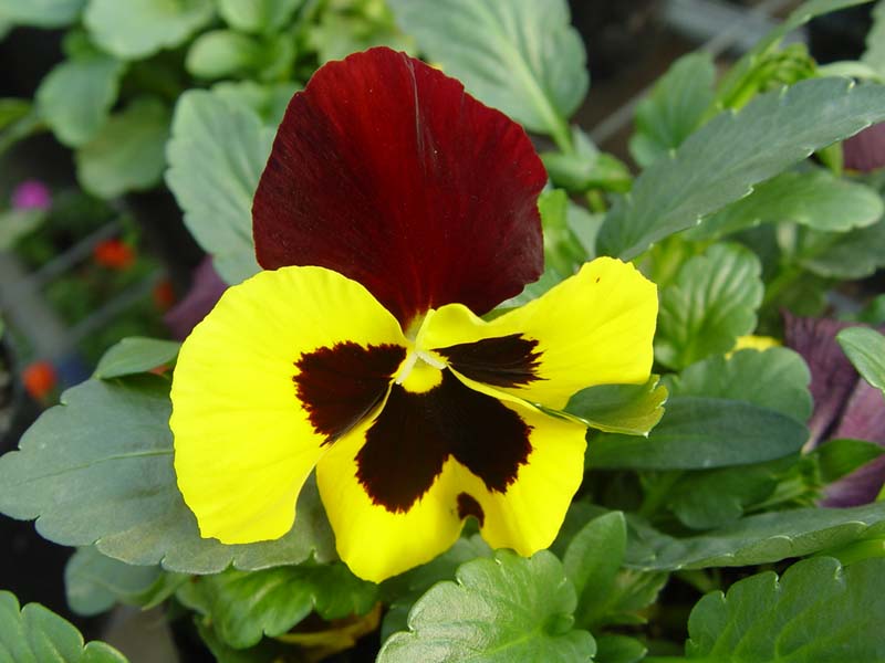 花单生于茎和分枝顶端,花梗细长;花瓣 5 片,花色丰富,常见紫、白、黄三色,也有单色(如纯紫、纯黄)或复色(如紫白渐变、黄心紫边),花瓣上常有斑纹,花型独特似猫脸;花期通常在 4-7 月,单朵花花期约 7-10 天,整株花期可延续 2-3 个月。
