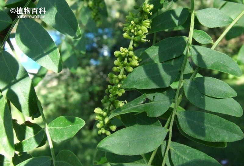 小叶3~9对,纸质,互生;小叶长卵形,倒卵形、长圆状卵形或卵状披针形,长2~8.5cm,宽1~4cm,先端急尖或渐尖,顶端圆钝,具小尖头,基部圆形或楔形,幼时稍歪斜;边缘具细齿,小叶柄长1~5mm,被短柔毛。花杂性,黄白色,组成总状花序腋生或顶生,花序长5~14cm,被短柔毛;雄花:直径9~10mm;两性花:直径10~12mm。荚果带状,长达12~37cm,宽2~4cm,劲直或扭曲,棕褐色或红褐色,熟时黑色,常被白粉。 http://www.flowerant.com